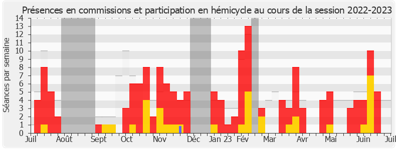 Présences enregistrées     Participations     Vacances parlementaires   Médiane des députés