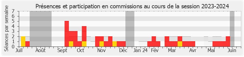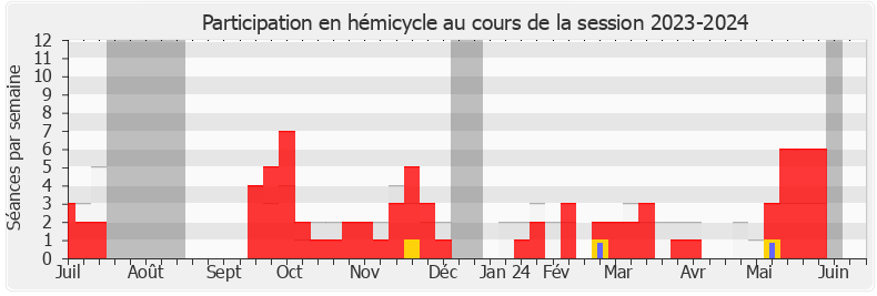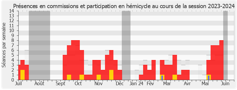 Présences enregistrées     Participations     Vacances parlementaires   Médiane des députés