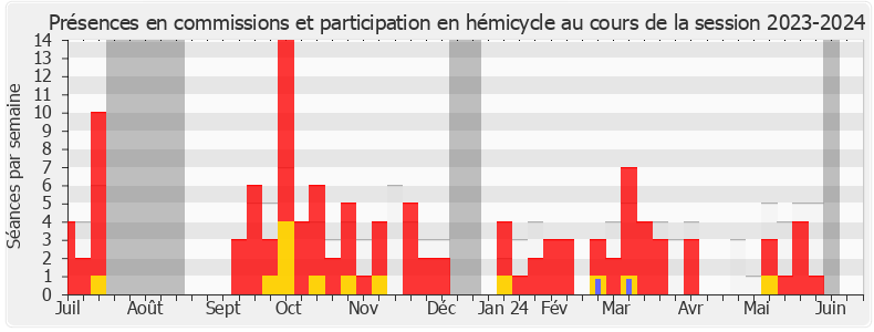 Présences enregistrées     Participations     Vacances parlementaires   Médiane des députés