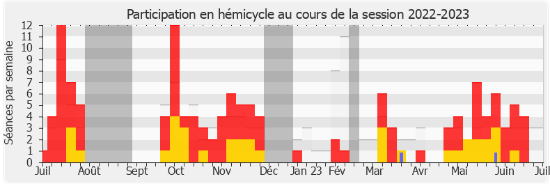Présences enregistrées     Participations     Vacances parlementaires   Médiane des députés