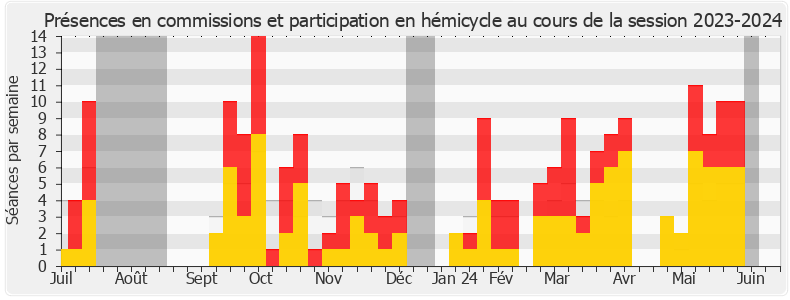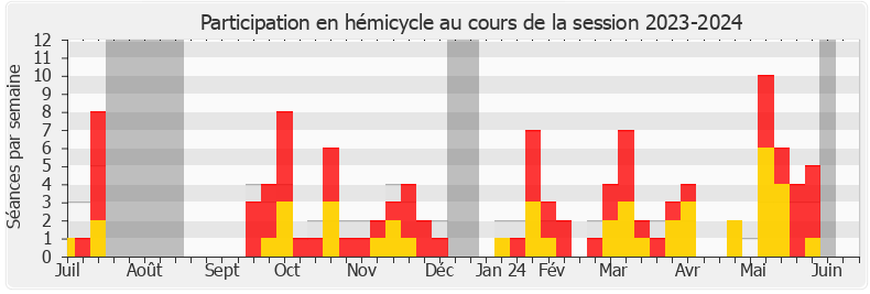 Présences enregistrées     Participations     Vacances parlementaires   Médiane des députés