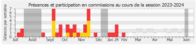 Présences enregistrées     Participations     Vacances parlementaires   Médiane des députés