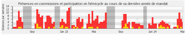 Présences détectées Participations Vacances parlementaires — Médiane des députés Lire plus d'explications