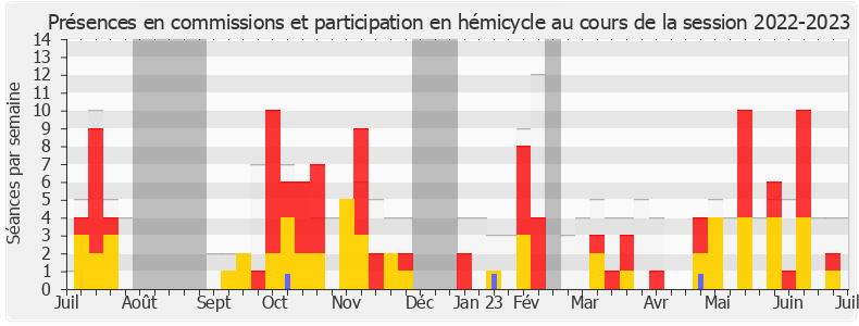 Présences enregistrées     Participations     Vacances parlementaires   Médiane des députés
