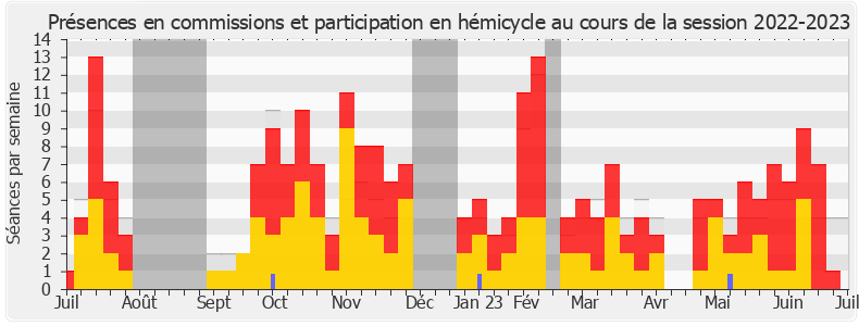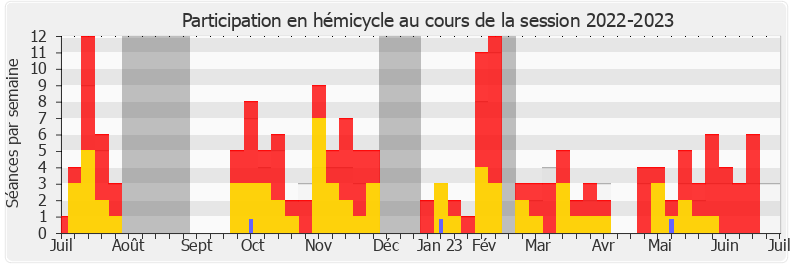 Présences enregistrées     Participations     Vacances parlementaires   Médiane des députés