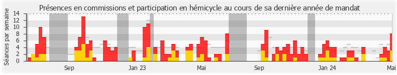 Présences détectées Participations Vacances parlementaires — Médiane des députés Lire plus d'explications
