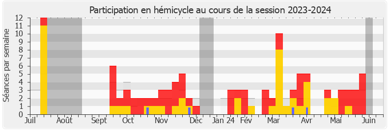 Présences enregistrées     Participations     Vacances parlementaires   Médiane des députés