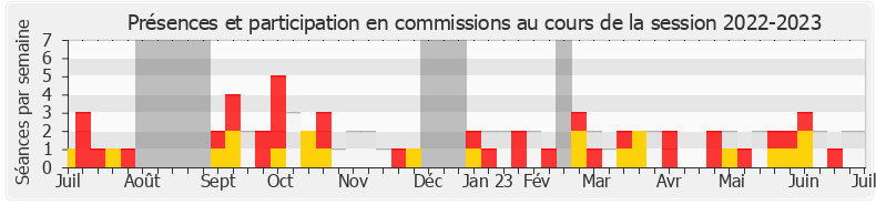 Présences enregistrées     Participations     Vacances parlementaires   Médiane des députés