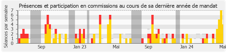 Présences enregistrées     Participations     Vacances parlementaires   Médiane des députés