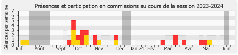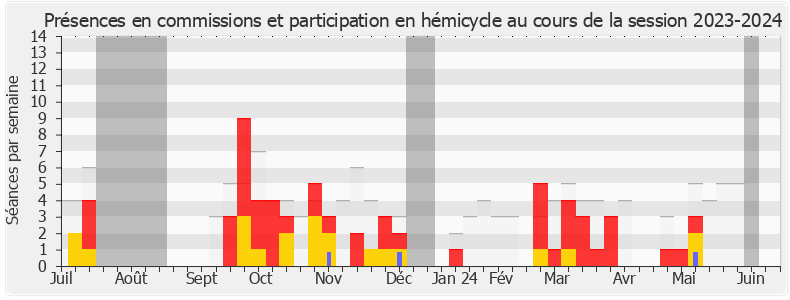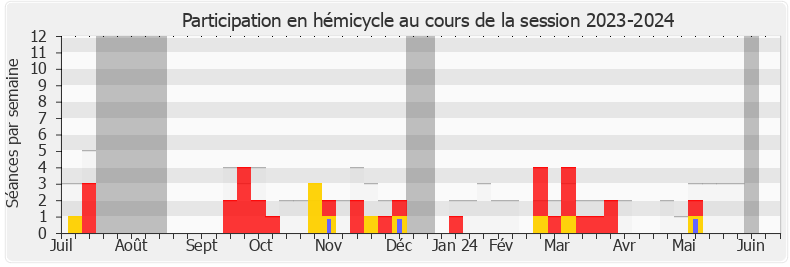 Présences enregistrées     Participations     Vacances parlementaires   Médiane des députés