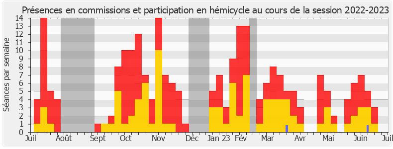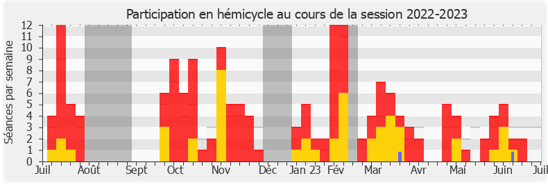 Présences enregistrées     Participations     Vacances parlementaires   Médiane des députés
