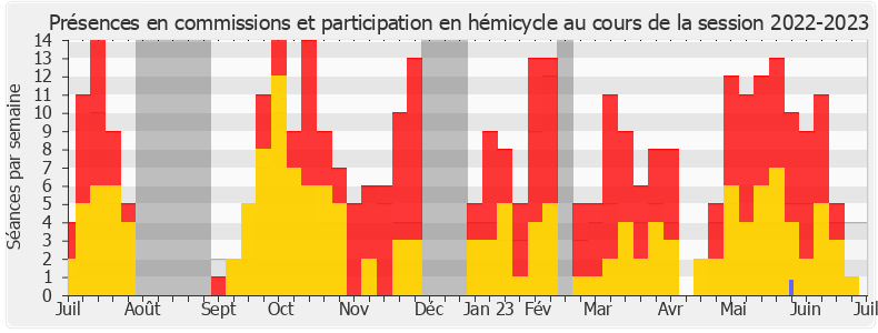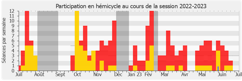 Présences enregistrées     Participations     Vacances parlementaires   Médiane des députés