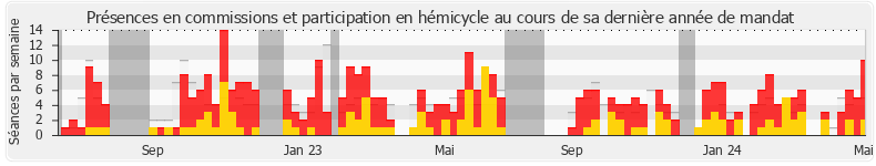 Présences détectées Participations Vacances parlementaires — Médiane des députés Lire plus d'explications