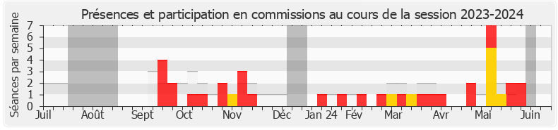 Présences enregistrées     Participations     Vacances parlementaires   Médiane des députés