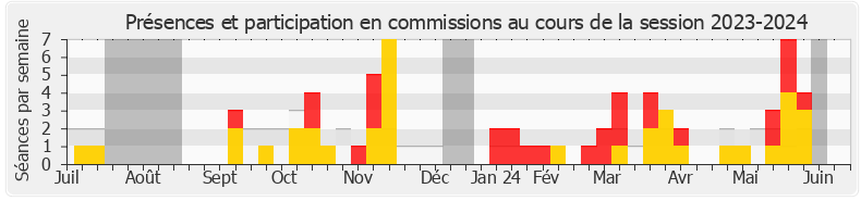 Présences enregistrées     Participations     Vacances parlementaires   Médiane des députés