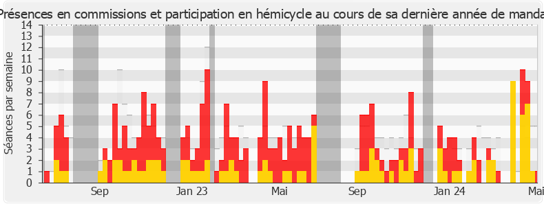 Présences enregistrées     Participations     Vacances parlementaires   Médiane des députés