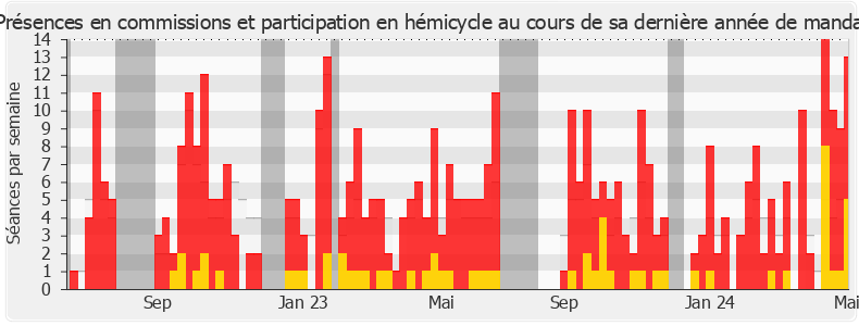 Présences enregistrées     Participations     Vacances parlementaires   Médiane des députés