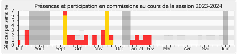 Présences enregistrées     Participations     Vacances parlementaires   Médiane des députés