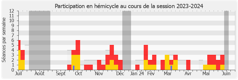 Présences enregistrées     Participations     Vacances parlementaires   Médiane des députés
