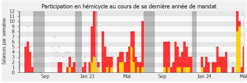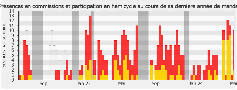 Présences enregistrées     Participations     Vacances parlementaires   Médiane des députés