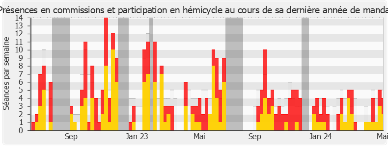 Présences enregistrées     Participations     Vacances parlementaires   Médiane des députés