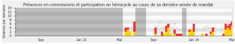 Présences détectées Participations Vacances parlementaires — Médiane des députés Lire plus d'explications