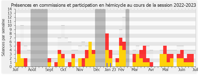 Présences enregistrées     Participations     Vacances parlementaires   Médiane des députés