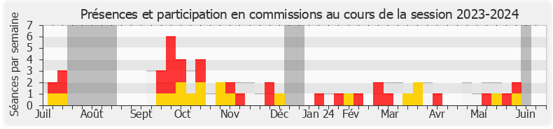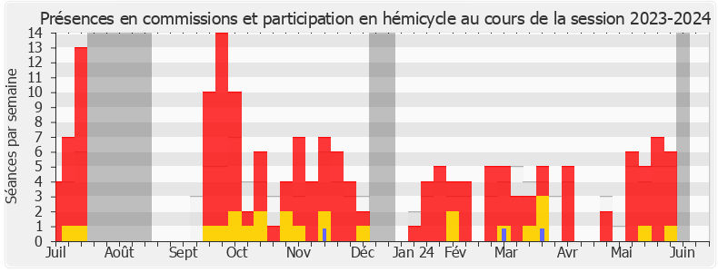 Présences enregistrées     Participations     Vacances parlementaires   Médiane des députés