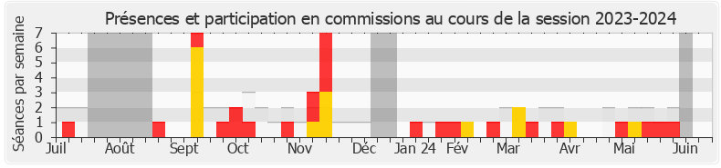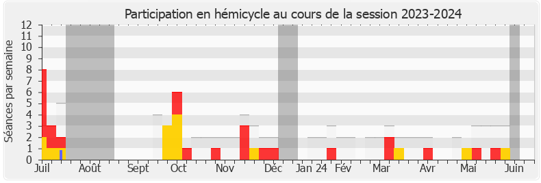 Présences enregistrées     Participations     Vacances parlementaires   Médiane des députés