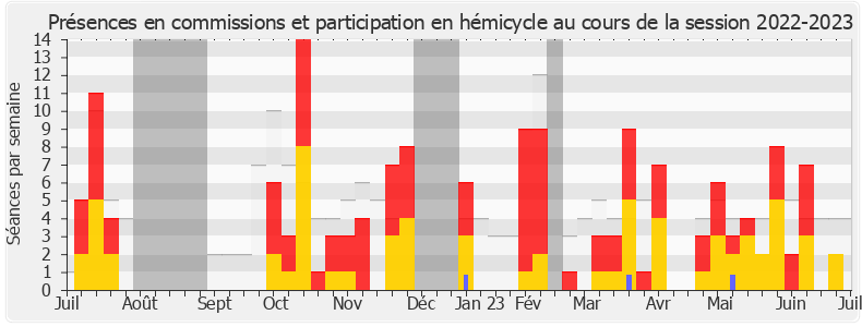 Présences enregistrées     Participations     Vacances parlementaires   Médiane des députés