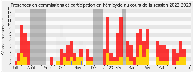 Présences enregistrées     Participations     Vacances parlementaires   Médiane des députés