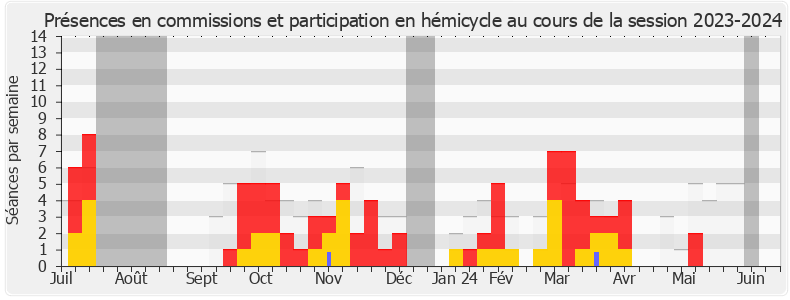 Présences enregistrées     Participations     Vacances parlementaires   Médiane des députés
