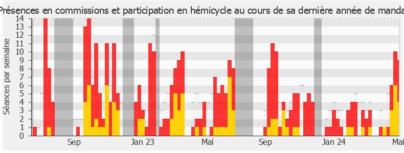 Présences enregistrées     Participations     Vacances parlementaires   Médiane des députés