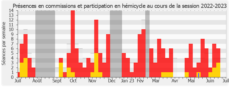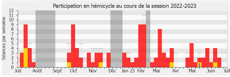 Présences enregistrées     Participations     Vacances parlementaires   Médiane des députés