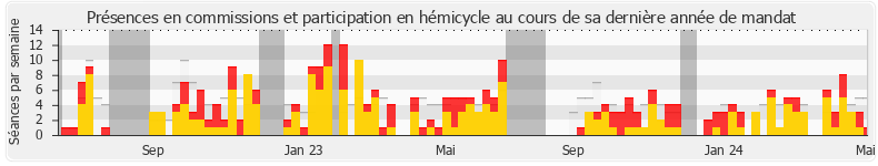 Présences détectées Participations Vacances parlementaires — Médiane des députés Lire plus d'explications