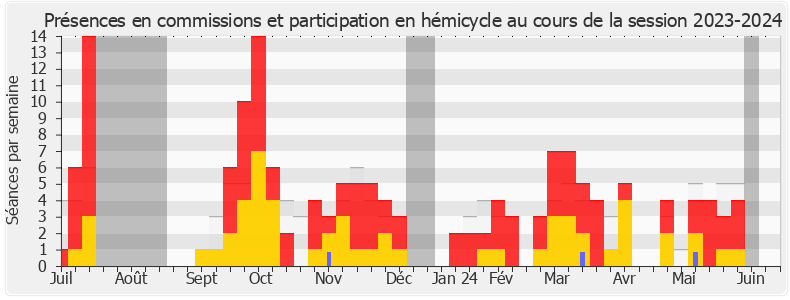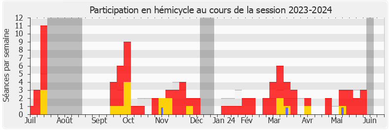 Présences enregistrées     Participations     Vacances parlementaires   Médiane des députés