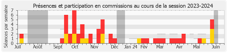 Présences enregistrées     Participations     Vacances parlementaires   Médiane des députés